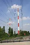 Power poles are masts supporting the power transmission lines. They are different from towers because of the only one leg they have in the ground.