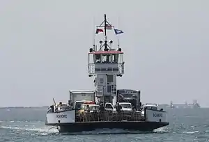A ferry route mapped as a way that departs Mo-Fr at times: