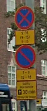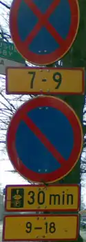 * Mo-Fr is used here because the example is a Swedish traffic sign where hours without brackets and in non-red colour refer to weekdays.