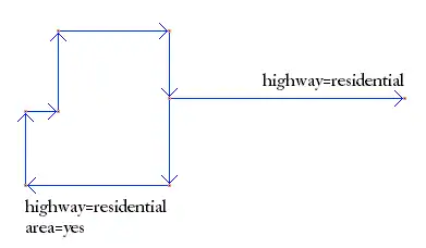 Então, como pode ser modelado em OSM? A estrada termina-em-espaço-situação poderia ser semelhante à OSM seguir: Para marcar uma área específica apenas desenhar o contorno por ela com uma forma fechada. Use a etiqueta específica que descreva essa característica, por exemplo, highway=residential. Agora adicione a tag area=yes, bem como para indicar que este caminho não é apenas um círculo, mas uma área fechada.