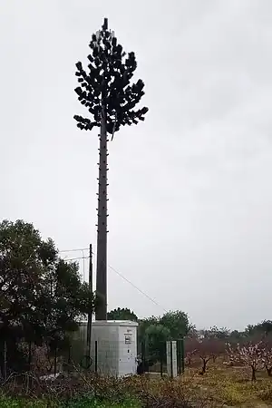 A etiqueta communication:mobile_phone=yes pode ser adicionada a um elemento (por exemplo man_made=mast ou man_made=tower) para especificar que este tem instalados equipamentos e antenas para comunicações móveis (2G/3G/4G/5G/etc.).