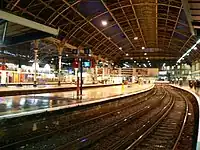 Estação de trem, mas também de outros transportes públicos (metro ligeiro, metrô, estação de conexão) se encontrarão aqui. Para eléctrico e paragens de autocarro normal utilização railway=tram_stop e highway=bus_stop. Apenas para uma grande como a ligação entre a estação railway=station.