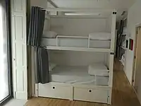 hostels fornecem alojamento onde os hóspedes podem alugar uma cama num quarto partilhado ou, por vezes, um beliche num dormitório, com casa de banho partilhada, cozinha e sala de estar.