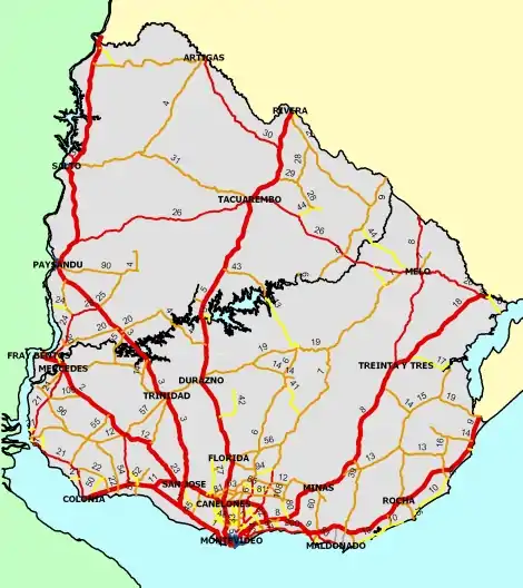 No Uruguai, usamos as seguintes convenções para o tipo de via em áreas não urbanas.