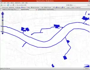 Water network, showing riverbanks, docks, coastlines, etc.