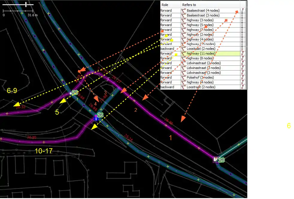 - Важно отметить, что простое изменение порядка следования всех участников отношения маршрута всё равно приведет к действительному маршруту, который затем может быть получен ref=26-25. Я бы предпочёл следовать соглашению, чтобы всегда идти от низкого к высокому уровню. Это должно объяснить, почему порядок некоторых членов кажется обратным.