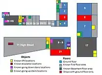 Ключ indoor=* используется в качестве ключа для внутренних коридоров, комнат и т.д., в схеме Simple Indoor Tagging scheme. В некоторых случаях есть применения, которые предшествуют схеме Simple Indoor Tagging из более старых, ныне несуществующих, предложений.