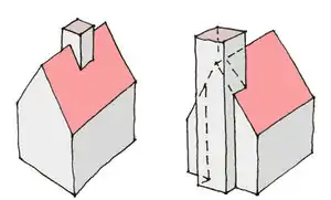 Дымоход, лежащий частично вне поверхности крыши, подсчитывается и отображается в 3D-модели на поверхности земли.