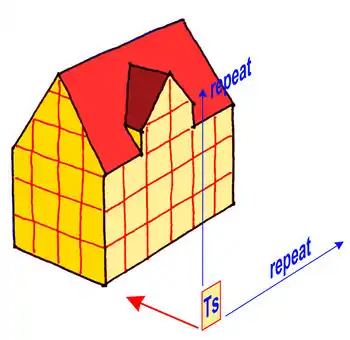 Пример: Дом с кирпичными стенами. Поверхность здания представлена суммой повторяющихся маленьких одинаковых фрагментов (Ts).