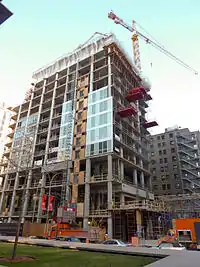 Используйте building=construction для обозначения здания, находящегося в данный момент в процессе строительства.