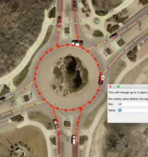 - Пометьте линию OSM кольцевой развязки с помощью junction=roundabout.