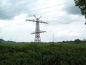 tower:type | suspension | A tower which supports the conductors vertically using suspension insulators. This is the default type and need not be tagged. However it may be useful to tag a suspension tower if it is used as an angle tower (an anchor tower would normally be expected here) | ![]() Verdrillmast Oberwoehr |