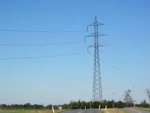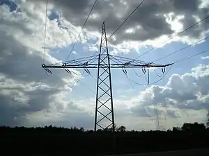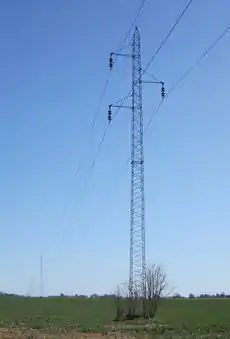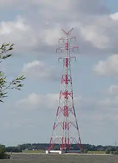 design | three-level | A tower having cross-arms at three levels. | ![]() 400 kV anchor towers (Denmark) |