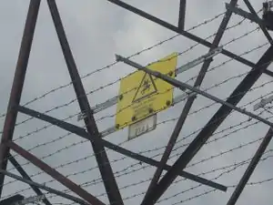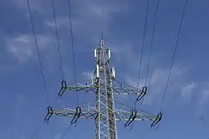 tower:type | anchor | A tower where conductor sections terminate at strain insulators, normally built stronger than normal suspension towers. Used e.g. when the line changes direction. | ![]() Branch tower |