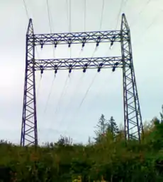 design | two-level | A tower having cross-arms at two levels. | ![]() 735 kV tower (Quebec) |