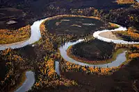 Старица — озеро U-образной формы, которое образуется, когда широкий меандр от основного русла реки отсекается, образуя отдельно стоящий водоём.