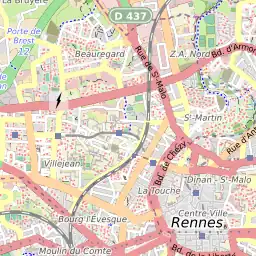 | OSM France Priority given to French names and symbols (baguette instead of pretzel for bakery!). Special display for sport fields. Usage policy: https://www.openstreetmap.fr/fonds-de-carte/ compare |