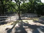 A fenced area where horses are kept, but can move freely and food and water is provided. The horses may stay in the open stable the whole time. The fence can be tagged using barrier=fence and fence_type=*. | ![]() | |