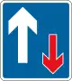 Road narrows on both sides ahead | traffic_calming=choker on the part of the way |