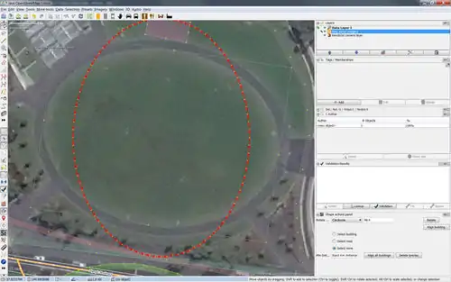 If in the background of OSM there are only roughly detailed aerial photographs, the tracing of the buildings is difficult because the size of the building is nearly the size as the icons of the design tools. This is of the greatest difficulty, if one wants to draw precisely: The graphical representation of the tools and nodes is simply too large for the objects in the small scale. The approach described here deals with this problem in rectangular buildings. The technique is laborious and slow, but gives relatively good results.
