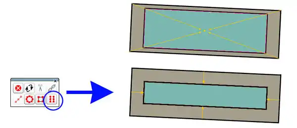 Practical use: We draw a large outline along the longest sides of the building and convert it into a rectangle (option "make right angles") around. We copy the rectangle to as many construction lines (which by definition are parallel and perpendicular to each other) as necessary. The construction lines (rectangles), are moved to the outer edges of the roof surface to trace the outline shape: