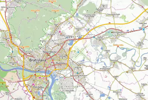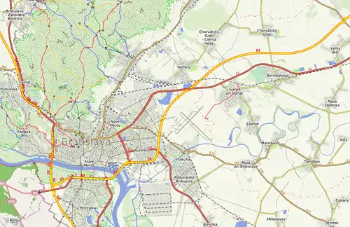 Mapa Bratislavy a okolia, stav k 18.08.2014