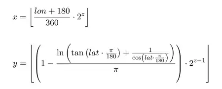 ytile = n * (1 - (log(tan(lat_rad) + sec(lat_rad)) / π)) / 2