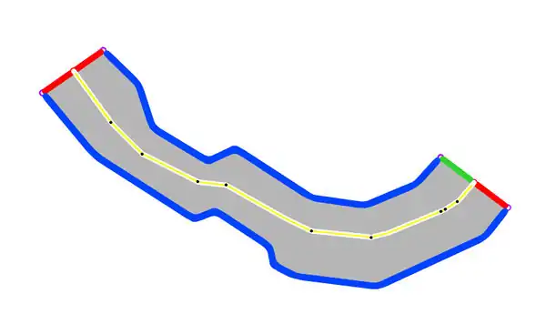 Points, located on the axis of the street called later in the text K (in the figure above points in red), are also points of areas area:highway=*, tagged as crossing:end=yes in cases if they have no other tag e.g. highway=stop.