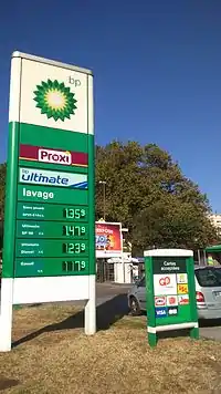 An advertising totem is generally a rectangular device, around 1 meter width, and 6.5 meter high (up to 8 meter high). Generally implemented in the entrance of a place where a commercial or industrial activity takes place, to announce this activity. It is a form of advertising sign. Grounded, it can be lit and can be animated with digital prices for example for a gas station which is a very common type of advertising device (Monument signs and post-and-panel signs may be classified as advertising totems when they are tall enough).