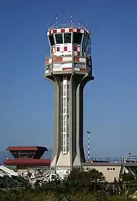 Lighting or navigation aids might be located on the tower, but should be mapped separately as they use different tagging schemes (See aeroway=*). Only use aeroway=tower for the structure designed for air traffic controllers to observe and control aircraft.
