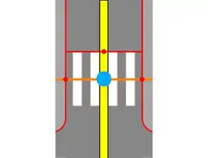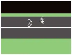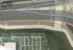 ![]() Segregated "foot & bicycle" crossing with traffic calming island |