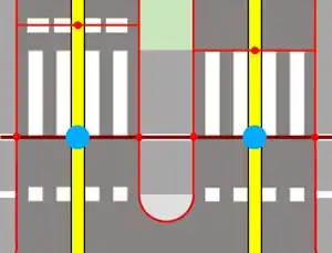| Traffic calming paving on a street edge (This element should be treaten as kind of a traffic calming area, not footway) |