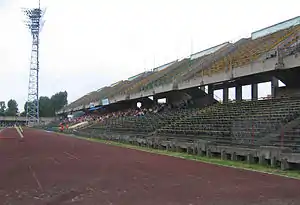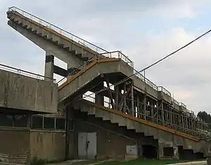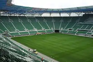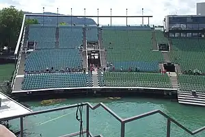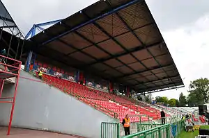 A building=grandstand is the building type for the main stand, usually roofed, commanding the best view for spectators at racecourses or sports grounds. It may have changing rooms or restaurants etc. under the seating area. It can be used within leisure=sports_centre, leisure=stadium or building=stadium to show the location of particular areas of seating.