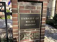 | Bears a sign labeling it as an embassy and is headed by an ambassador. |