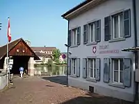 | A structure near or at an international boundary or within a country where travellers and/or vehicles are inspected for the import and export of goods. |