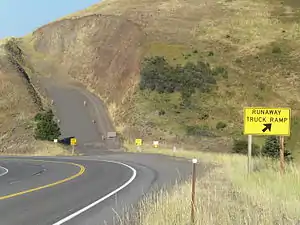 | Emergency lane beside long descending slopes for trucks to stop after brake failure. |