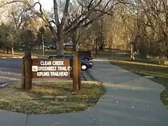 A trailhead is a designated or customary place where people can stop or start a trip on one or more trails or routes. Its position may be marked by a shelter, pole, special design, flag, banner, or parking area. Often there will be a board with a name and a reference to an operator. Parking space will usually be available. Some trailheads are unmarked and known only by word-of-mouth or from information provided on a list or website.