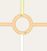 | A road junction where the traffic goes around a non-traversable island and has right of way. |