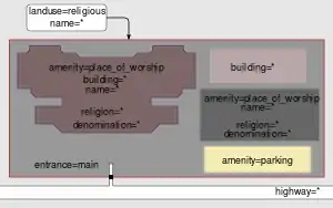The actual mosques, churches, cathedrals, synagogues, temples - in other words the particular building where the worship is being hold on the campus - should be drawn as a polygon or mapped as a single node:
