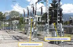 A dual switches association in distribution substation. The circuit-breaker is on the transmission side and assume the power grid protection. It has to be operated prior to the disconnector since the power line is surely loaded. The disconnector switches are operated by the distribution operator in maintenance operations when the substation needs to be forced offline. |