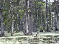 swamp is a freshwater wetland covered in dense, woody vegetation (trees or shrubs). Swamps can be seasonally or permanently flooded or saturated.