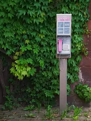 - disused:amenity=telephone - Für Telefone, die (dauerhaft) außer Betrieb sind und/oder nicht mehr repariert werden, deren Grundgerüst (Telefonzelle/-säule) aber noch vorhanden ist.