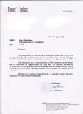 courrier de le communauté d'agglomération Tour(s)plus autorisant l'utilisation de l'orthophoto dans OpenStreetMap