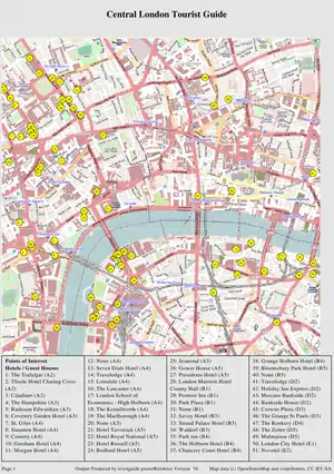 The TownGuide map generator (townguide.webhop.net) is a python program that will render a map to a PDF file and include a street index and an index of user selectable points of interest.