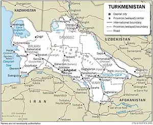 - Административное деление Туркмении (Russian Wikipedia: Administrative Division of Turkmenia CAUTION: Appears not to have been updated since 2015, so is out of date.)