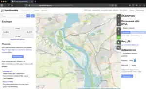 Ви можете використовувати бокові панелі на головній OpenStreetMap.org для виконання базових операцій по експортуванню зображення мапи або даних, що лежать в її основі, для вибраної місцевості.