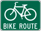 Some cities (Washington, DC; Portland, Oregon; Berkeley and San Francisco, California; Binghamton, New York; Sandpoint, Idaho) and counties (Santa Clara, California; Travis, Texas) have a local cycle network comprised of bicycle boulevards, dedicated cycleways, bike lanes and other roadways, which may or may not be designated as specific (numbered or explicitly named) routes. These signed routes use network=lcn + cycle_network=US:XY:Locality (where XY is the ISO 3166-2:US code — the same as the postal abbreviation — for the state and Locality is the name of the county, city or locality) in route relations if specific routes have been designated (via either the M1-8a local bike route sign oval seen here or a county/city/local government published bike route map). If a route is explicitly numbered, enter its number as a ref=* value. Otherwise, if only the D11-1 generic "Bike Route" sign seen to the right and below is posted without labeling or numbering of routes, OSM ways so signed as local bike routes should be tagged lcn=yes, either directly or as members of a network=lcn relation tagged lcn=yes.