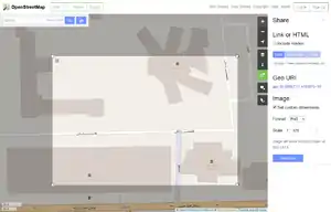 To get a snapshot from the OpenStreetMap world map as an image file, use the export function.