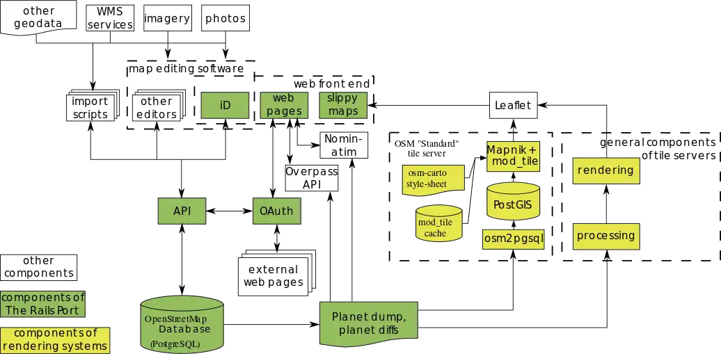 - Also, OpenStreetMap runs on a relatively small server deployment for its size - see our notes on server hardware for details. There are also API v0.6 mirrors and Dev and Test APIs which help with testing code that interacts with the OSM API.