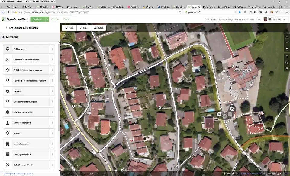 Je ziet ook dat het kaartbeeld nogal druk is. Je kunt echter wel een aantal zaken die je niet wilt zien uitschakelen. Raadpleeg de iD pagina voor meer informatie.